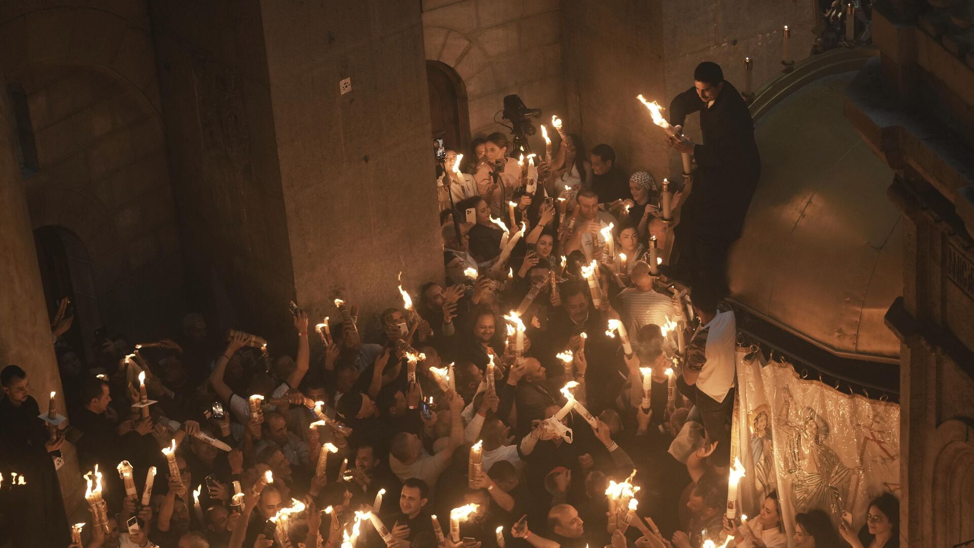 Благодатный огонь зажигается в храме Гроба Господня в Иерусалиме в Великую субботу, накануне праздника Воскресения Христова — Пасхи. Русская православная церковь и другие христианские конфессии, следующие юлианскому календарю, в этом году отмечают Светлое Воскресение 12 апреля. По традиции частицы Благодатного огня развозят по разным странам как святыню, символизирующую нерукотворный свет Воскресения Христова.