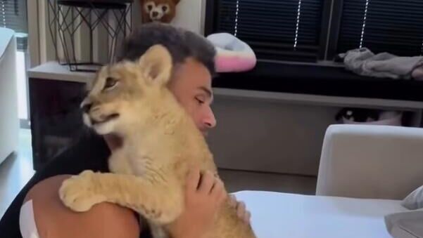 Кроме того, в его аккаунтах есть кадры, показывающие львенка в бытовой обстановке: на видео видно, как с животным играют дети и кормят его из бутылочки.
