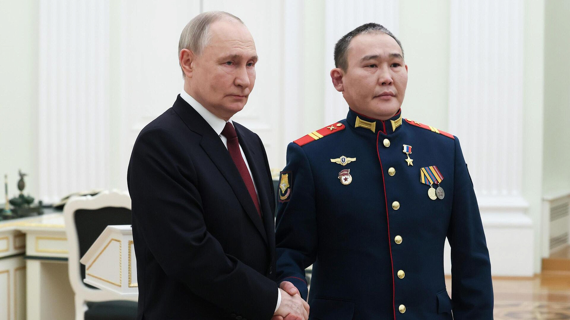 Программа для участников спецоперации "Якутия - Земля Героев" начнется 21 февраля, а с июня начнется обучение первых бойцов. "Мне предложили присоединиться к кадровой программе для участников СВО. Я собираюсь учиться", - сказал Григорьев журналистам. Глава Якутии Айсен Николаев вручил ему сертификат на 1,5 миллиона рублей, а "Тута" в свою очередь подарил Николаеву якутский нож. Президент России Владимир Путин в январе присвоил Григорьеву звание Героя России, а 23 февраля в Кремле вручил ему медаль "Золотая Звезда". В начале января в социальных сетях появилось видео, снятое с нательной камеры украинского военного, где он сражается с российским штурмовиком, который в итоге побеждает. На видео запечатлены последние моменты жизни украинца, который просит российского бойца оставить его в покое. Штурмовик из Якутии выполняет его просьбу. Инцидент произошел в районе села Трудовое в Донецкой Народной Республике.