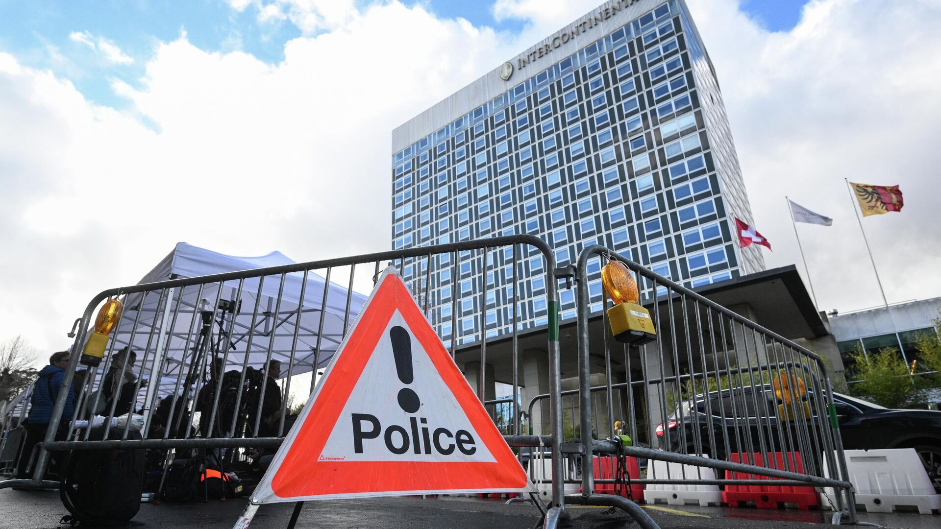 Группа с украинскими флагами устраивала провокации у шатра прессы в Женеве