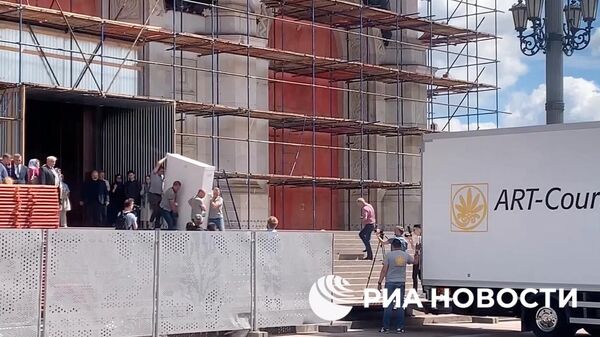 Икону "Троица" Андрея Рублева доставили из храма Христа Спасителя в Москве в Троице-Сергиеву лавру в преддверии праздника Святой Троицы.