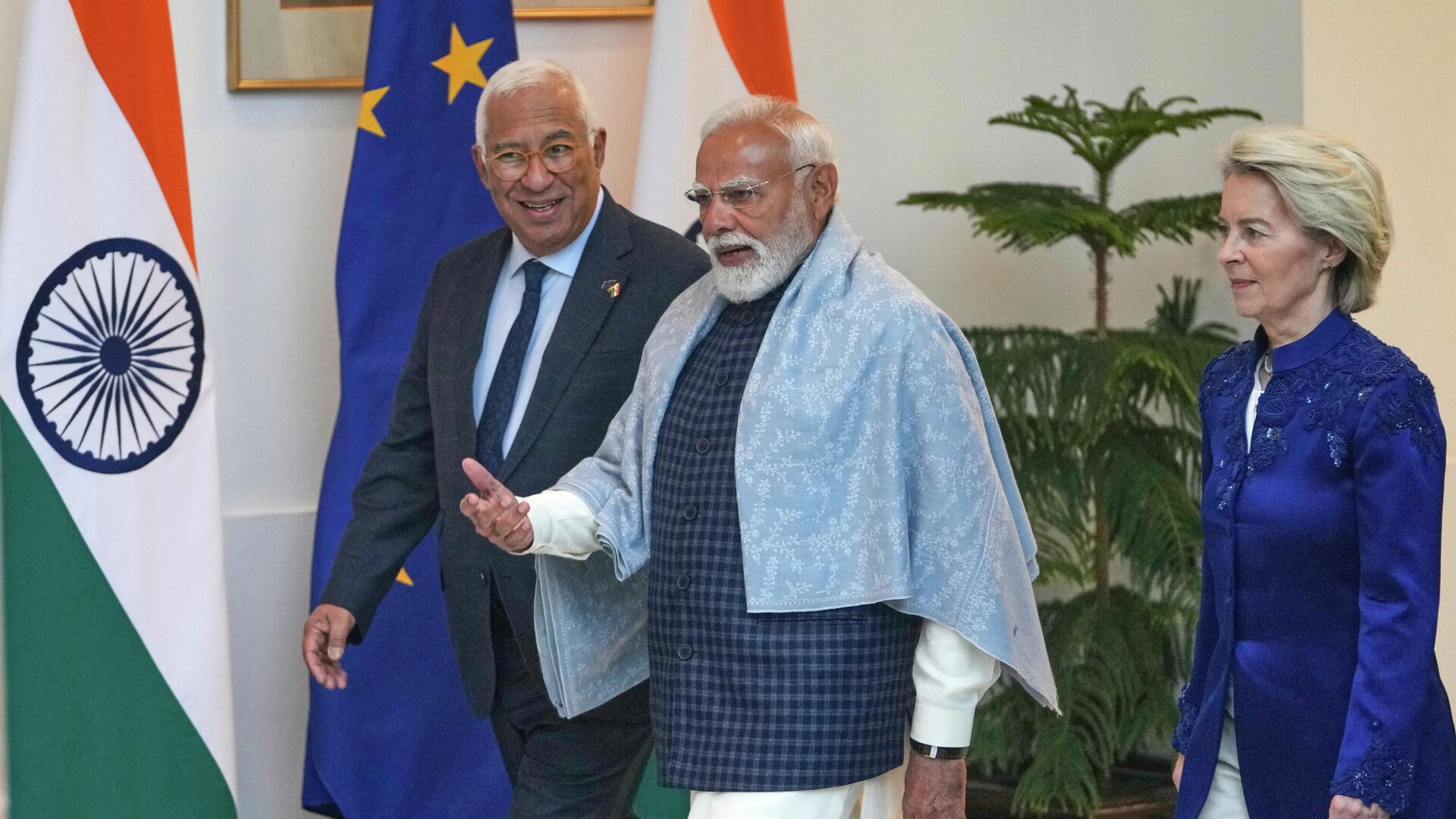 Церемония подписания, которая транслировалась по индийскому телевидению, прошла в присутствии премьер-министра Индии Нарендры Моди, председателя Еврокомиссии Урсулы фон дер Ляйен и председателя Европейского Совета Антониу Кошты.
