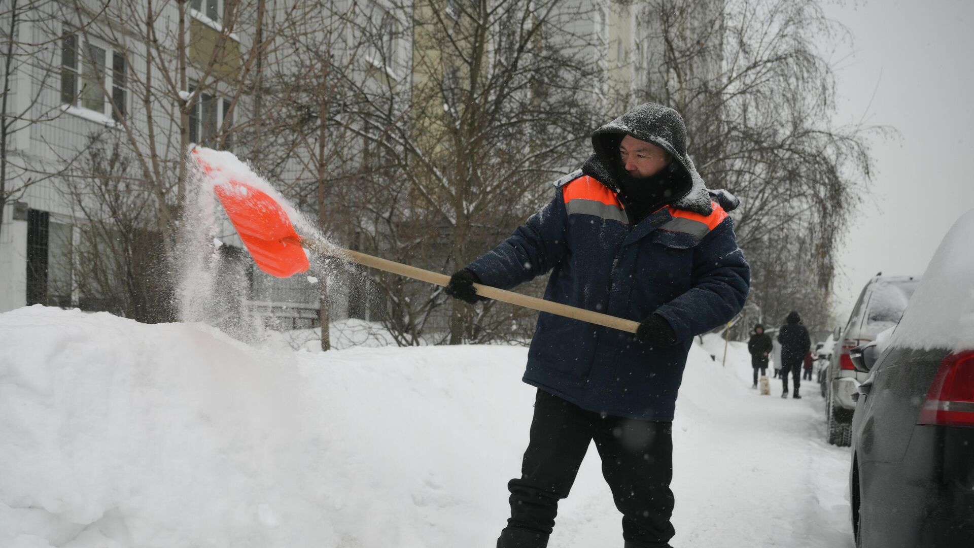 Он добавил, что для сотрудников организован специальный городок с местами для обогрева и полевой кухней. Собранный снег отвозят на снегоплавильные станции.