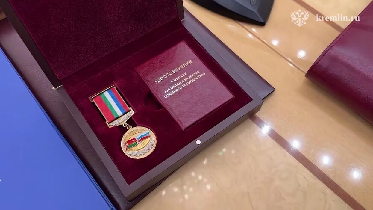 Кремль представил специальную медаль, выпущенную в честь 25-летия Договора о создании Союзного государства - "За вклад в развитие СГ".