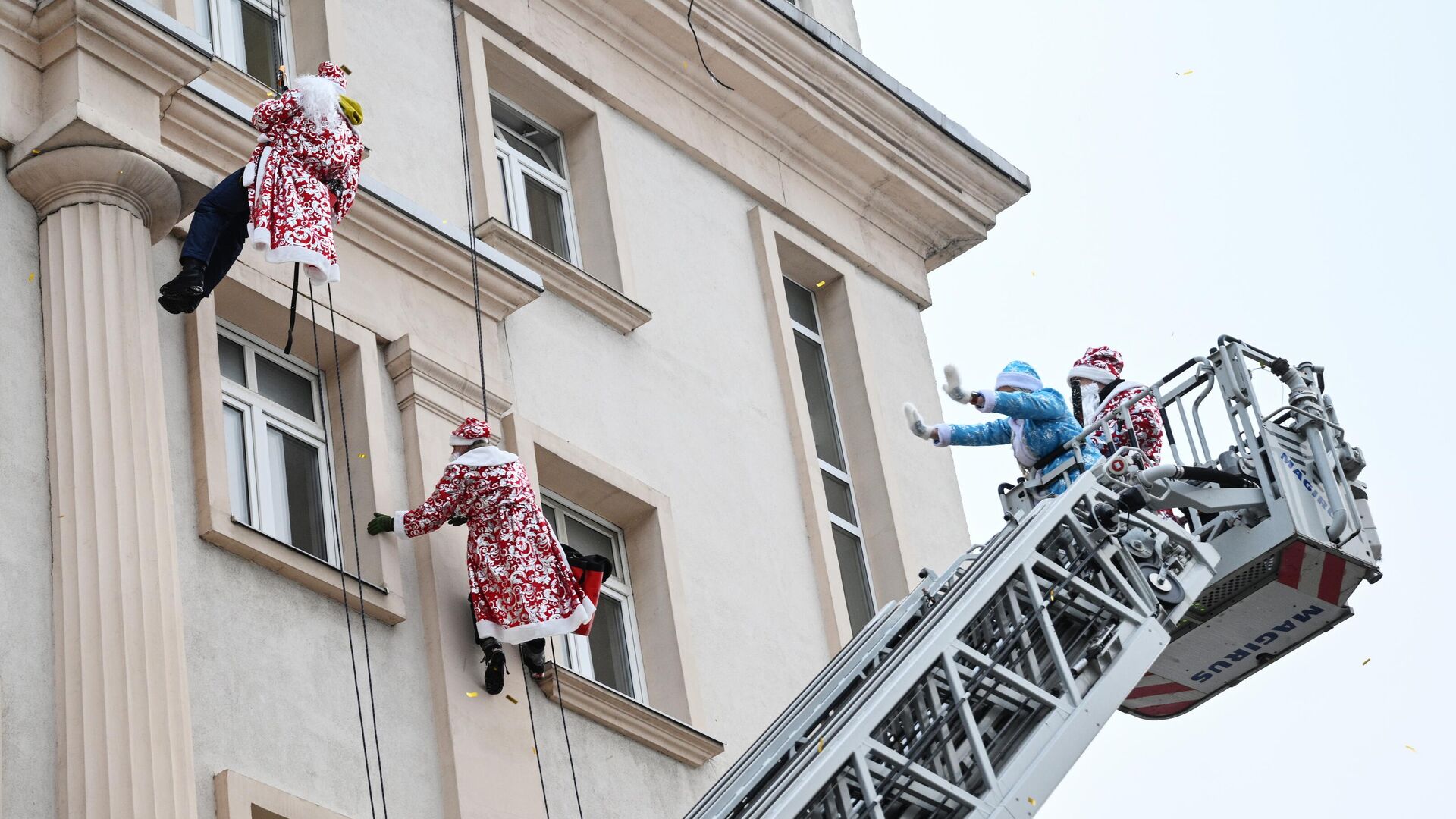 Директор института Александр Брянцев подчеркнул важность таких мероприятий для маленьких пациентов, которые находятся в стационаре и испытывают негативные эмоции. Спасатели из различных служб переоделись в Дедов Морозов, спустились по стенам института и поздравили детей с Новым годом. Заместитель начальника ГКУ "ПСЦ" – начальник аварийно-спасательной службы Денис Святынин отметил, что подготовка к мероприятию тяжела, но она окупается полностью. Новогодний десант Дедов Морозов проводится уже четвертый год и продлится с 16 по 27 декабря, а в последний день на Морозовской детской городской клинической больнице появится порядка 50 Дедов Морозов.