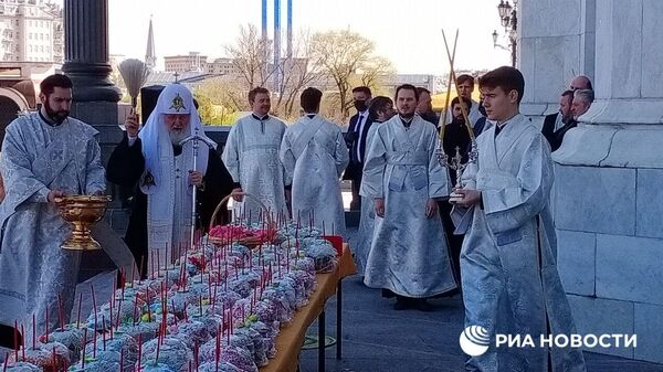Патриарх Кирилл освятил куличи после богослужения в Храме Христа Спасителя в Москве, сообщили в пресс-службе.