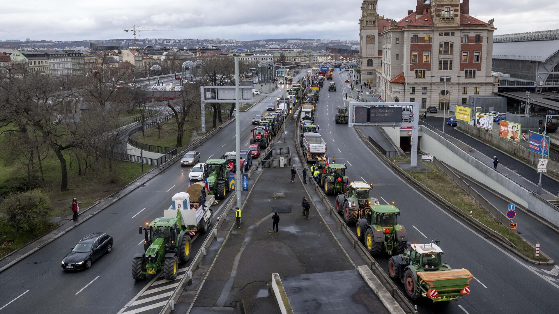 Протестующие в Праге фермеры сошлись в потасовке с противниками акции