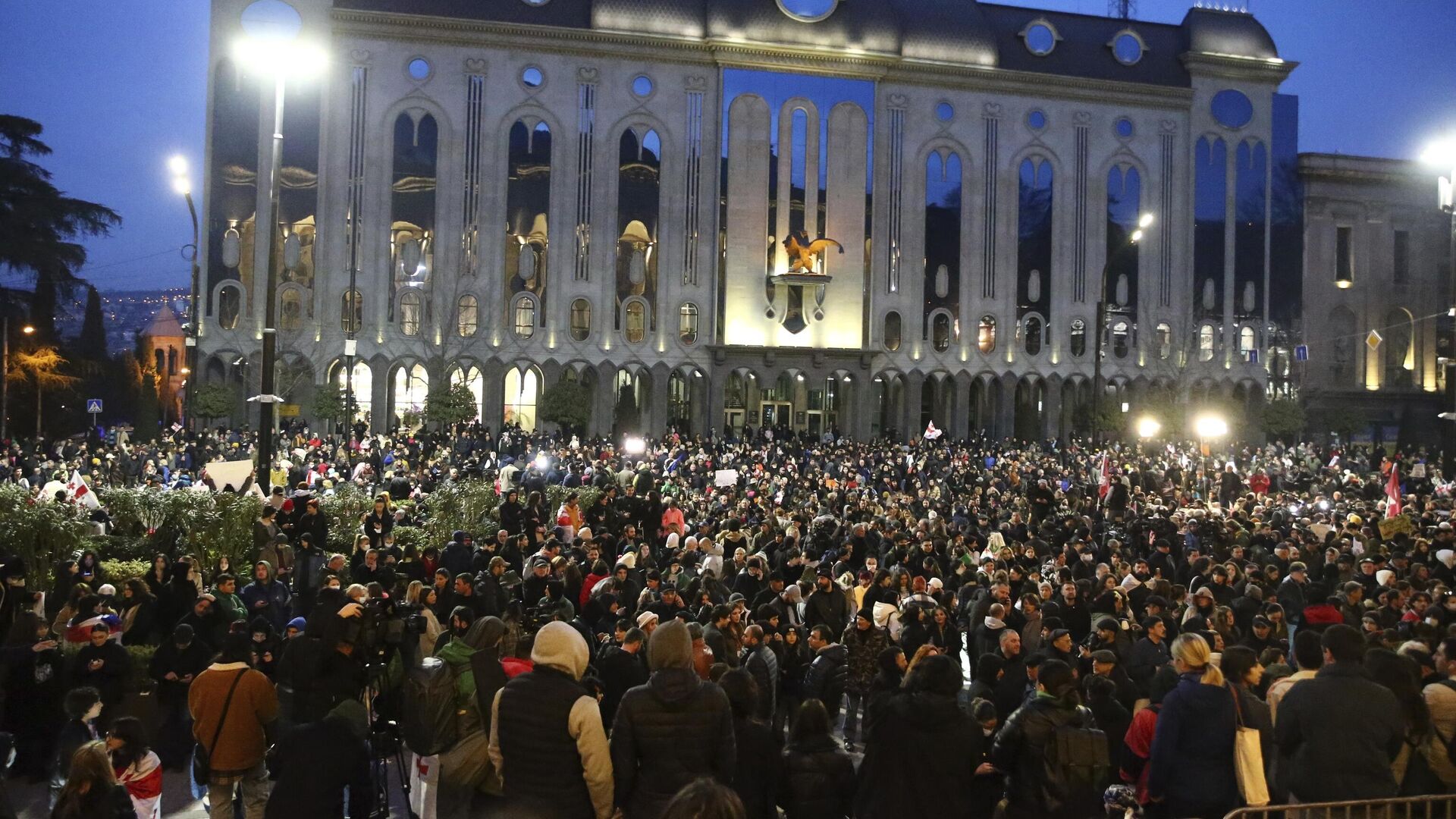 Полиция не вмешивается в ситуацию, ограничив лишь движение автомобилей по проспекту Руставели. Новая волна протестных акций оппозиции началась в Грузии 28 ноября после заявления премьер-министра Ираклия Кобахидзе о приостановке рассмотрения вопроса о начале переговоров по членству страны в Евросоюзе до 2028 года. Участники акций используют петарды, камни, бутылки, а также были обнаружены бутылки от "коктейлей Молотова". Силовики в ответ применяют спецтехнику, включая водомёты.