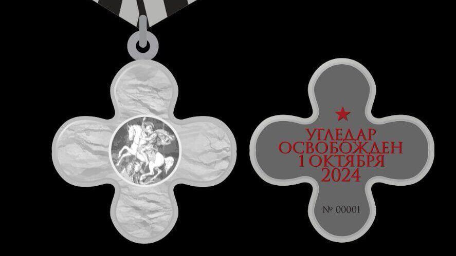Эта региональная награда представляет собой крест с изображением Георгия Победоносца в центре, поражающего крылатого змея. Минобороны России объявило об освобождении Угледара 3 октября 2024 года. Медаль "За освобождение Угледара" удостаиваются участники боевых действий, организаторы боевых операций и участники разминирования города с 24 февраля 2022 года по 3 октября 2024 года. Медаль изготавливается из серебристого металла, имеет форму креста с скругленными краями и украшена изображениями всадника и крылатого змея. На оборотной стороне медали указана дата освобождения Угледара и порядковый номер. Она подвешена к пятиугольной колодке, обтянутой лентой с черными и серыми полосами.