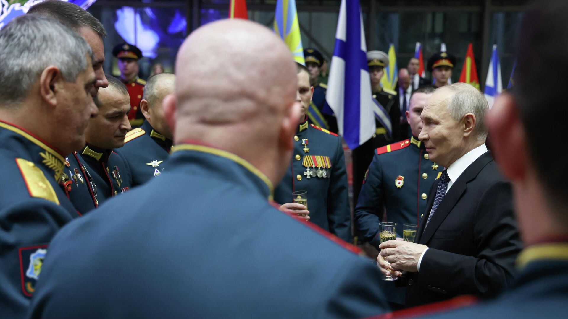 Как сообщает корреспондент РИА Новости, общение состоялось после торжественной церемонии в здании Министерства обороны. По традиции всем участникам предложили бокал шампанского. По просьбе президента встреча проходила без присутствия камер.