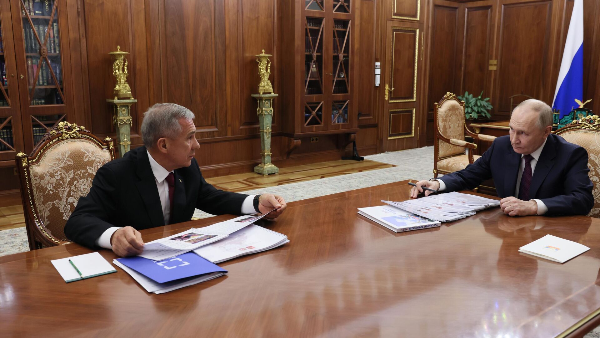 Глава республики, Рустам Минниханов, сообщил президенту о экономическом прогрессе региона, отметив увеличение валового регионального продукта (ВРП) почти в три раза за предыдущие годы. Путин отметил, что нагрузка на экосистему сокращается, но подчеркнул важность этого вопроса. Минниханов заверил, что все требования "зеленой" и циркулярной экономики соблюдаются в регионе, и проекты соответствуют мировым стандартам. Также было отмечено развитие отдельных предприятий, включая Казанский вертолетный завод, и работа оборонных предприятий, включая производство беспилотников. Путин также проявил интерес к развитию особой экономической зоны "Алабуга" в Татарстане, на что Минниханов отметил успешное развитие зоны.