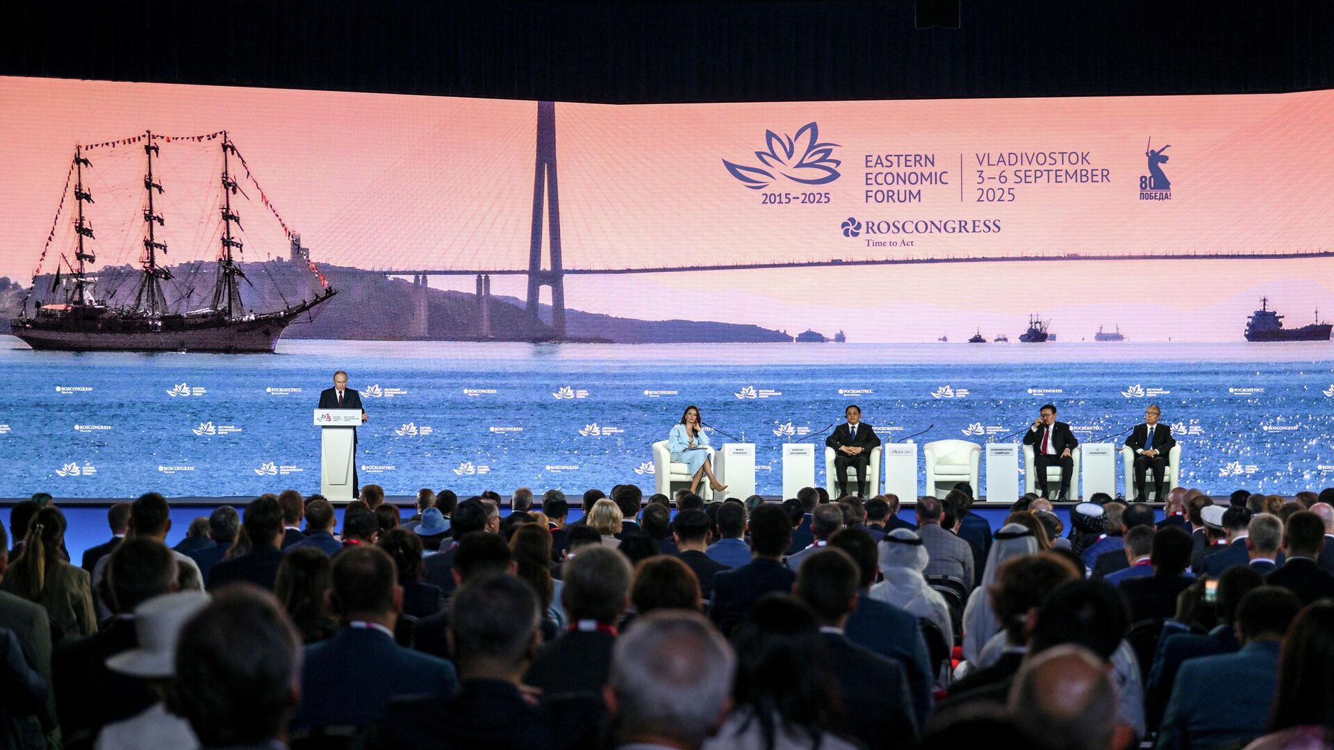 Президент также отметил необходимость развития связи, навигации, обслуживания судов и аварийно-спасательной инфраструктуры. Он подчеркнул важность модернизации морских портов в Арктике и на Дальнем Востоке. Десятый Восточный экономический форум проходит с 3 по 6 сентября во Владивостоке на территории кампуса Дальневосточного федерального университета. Главная тема форума - "Дальний Восток: сотрудничество во имя мира и процветания". РИА Новости является генеральным информационным партнером мероприятия.