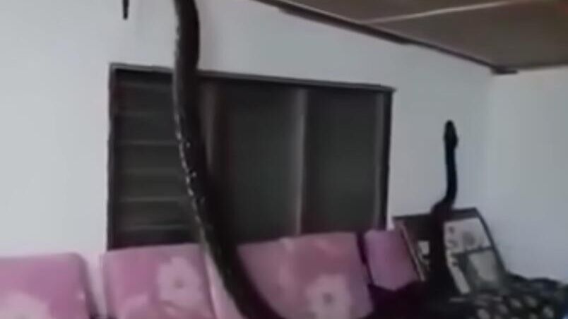 Трехметровая змея проломила крышу дома и напугала семью