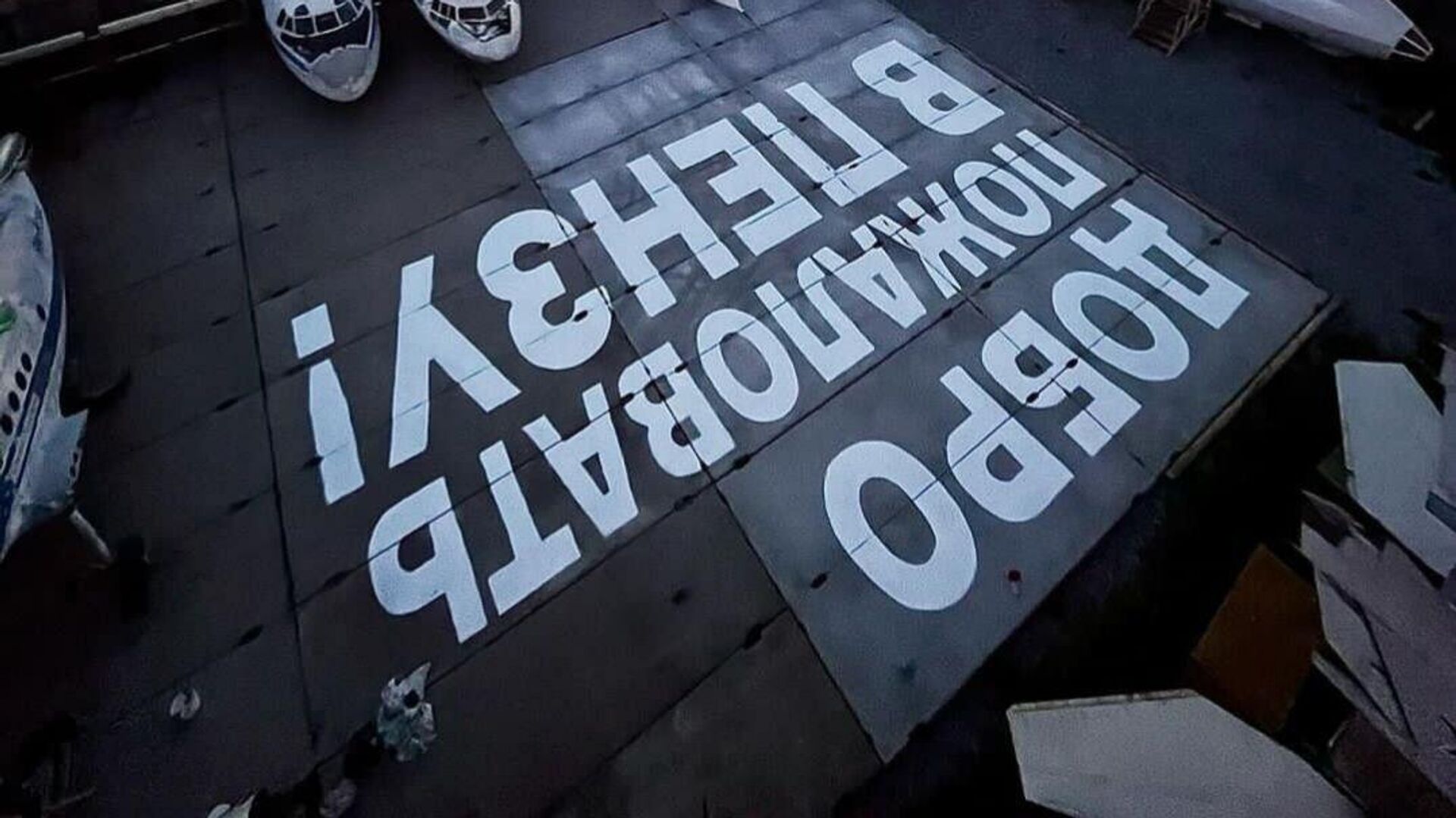 В Перми перед аэропортом появилась забавная надпись "Добро пожаловать в Пензу!", которую видно пассажирам, садящимся на самолеты.