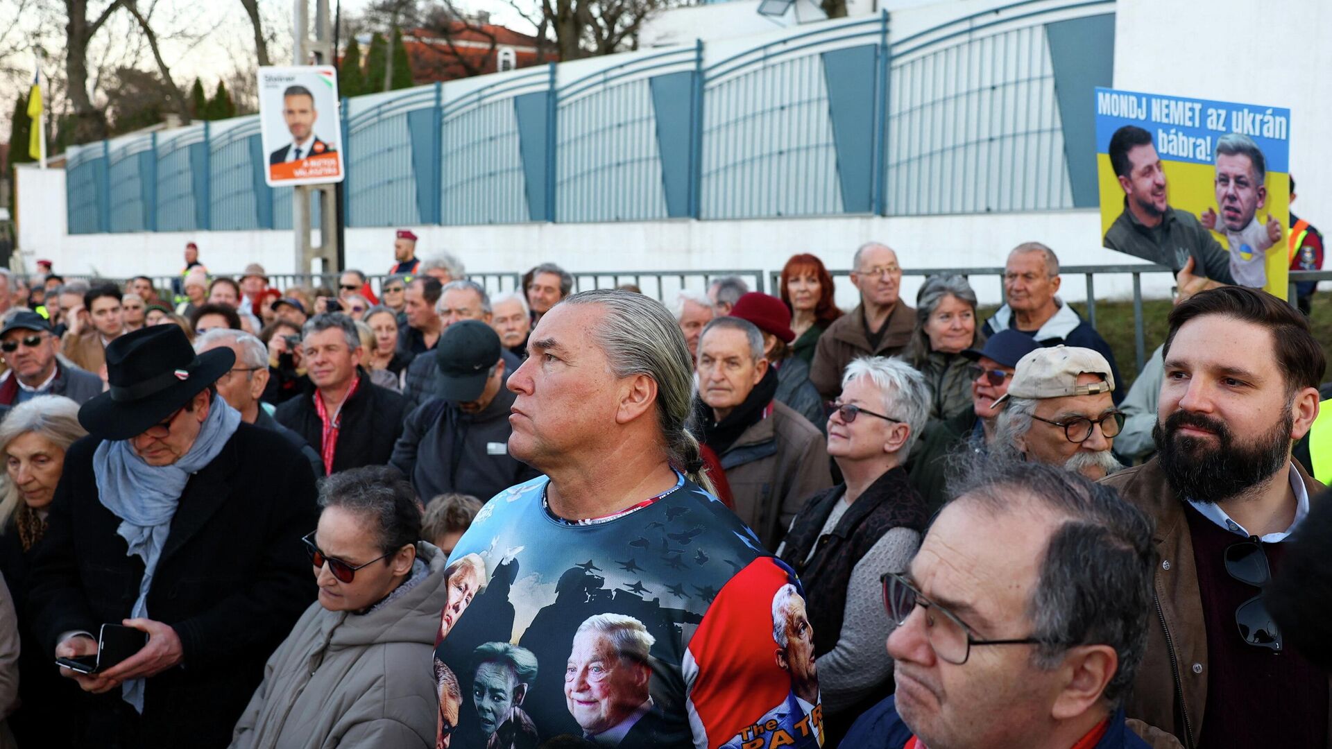 В митинге приняли участие около тысячи человек. Они держали венгерские флаги и плакаты с надписями "Украина – государство мафии", а также изображения Владимира Зеленского и лидера венгерской оппозиционной партии "Тиса" Петера Мадьяра на фоне украинского флага с лозунгом "Скажи «нет» украинской марионетке".
