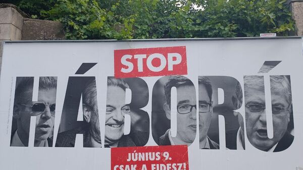 В преддверии выборов в Европарламент на улицах Будапешта появились новые плакаты на тему "войны и мира", изображающие премьер-министра Венгрии Виктора Орбана и его политических оппонентов.