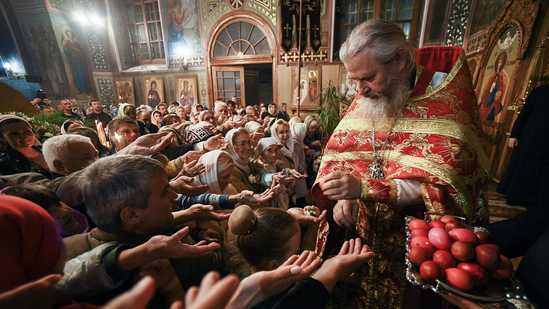 Несмотря на напряженную обстановку из-за военных действий, люди с самого утра приходят освятить пасхальные куличи. В этом году в Русской церкви празднуют Воскресение Христово 5 мая. Вчера, по традиции, были освящены куличи, яйца и другие пасхальные угощения, которыми верующие могут насладиться после ночной пасхальной литургии.