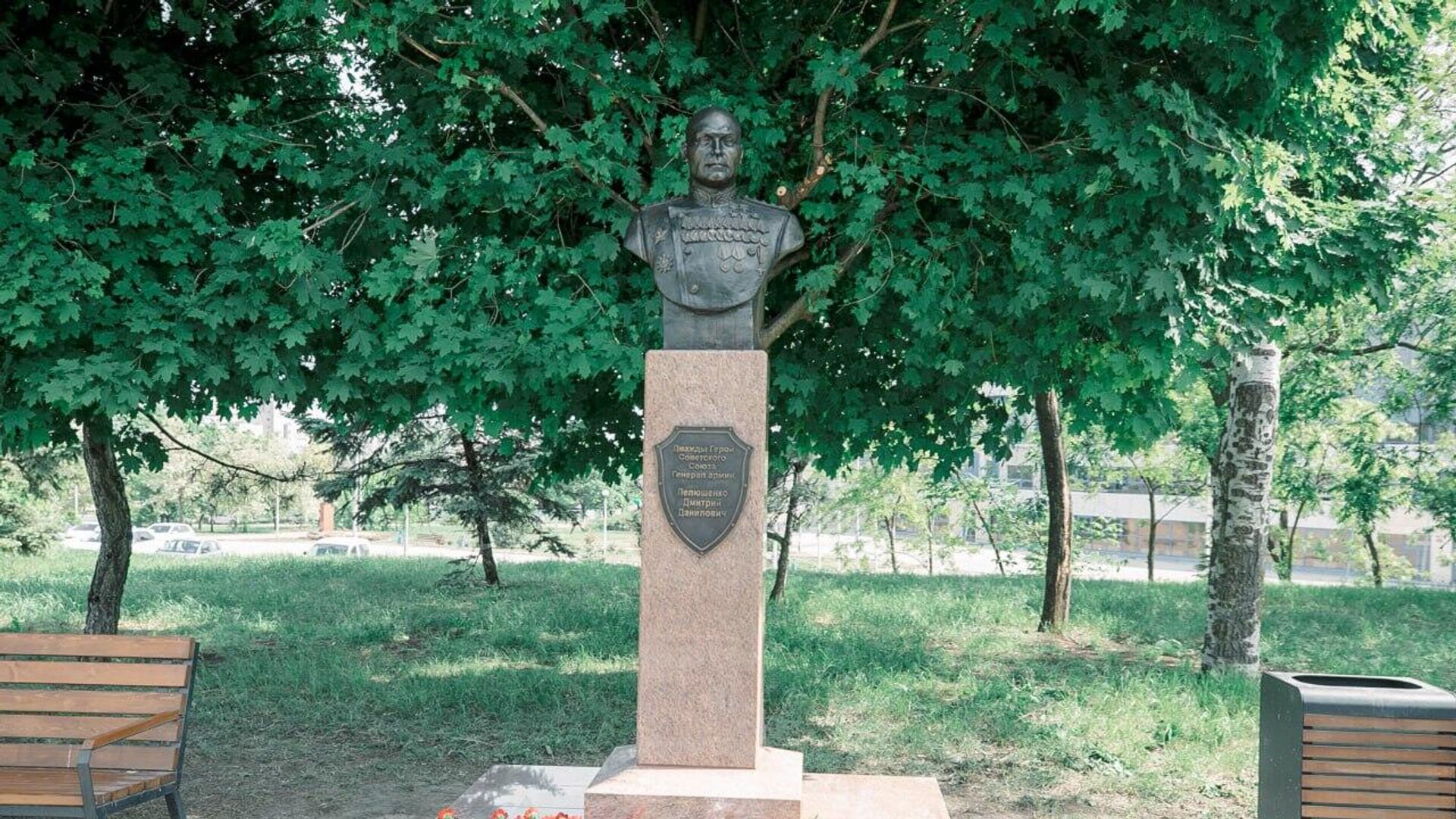 В честь Дня Победы в Мариуполе в ДНР был открыт бюст генерала Дмитрия Даниловича Лелюшенко, который дважды был удостоен звания Героя Советского Союза.