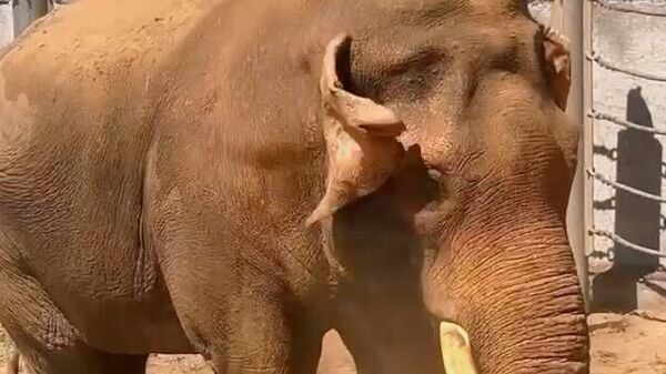 В Московском зоопарке слоны наслаждаются летними развлечениями, спасаясь от жары в бассейнах, прохладном душе из шланга и полном выгоне песка.