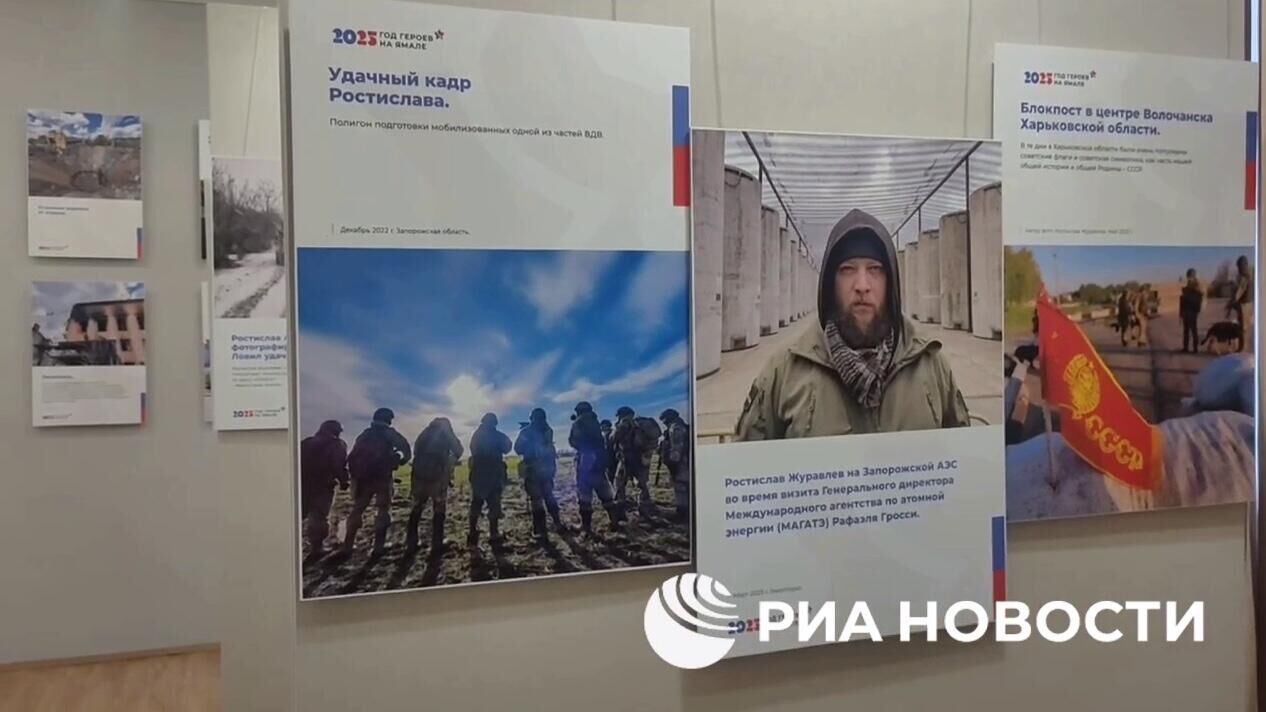 В субботу в Салехарде открылась выставка, посвященная памяти военкора РИА Новости Ростислава Журавлева, погибшего в зоне специальной военной операции в 2023 году в Запорожской области.