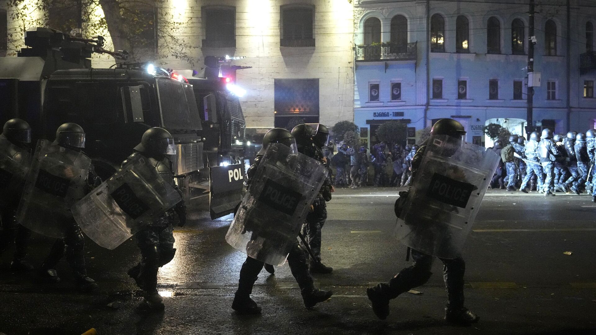 Он также отметил, что произошло разбойное нападение на ювелирный магазин Swarovski, расположенный рядом с парламентом. По данным МВД, во время митингов была нанесена ущерб инфраструктуре города, повреждены автомобили, мотоциклы и личные вещи граждан. Протесты оппозиции начались 28 ноября после заявления премьер-министра Ираклия Кобахидзе о приостановке рассмотрения вопроса о членстве Грузии в Евросоюзе до 2028 года. Участники протестов использовали петарды, камни, бутылки, а также были найдены бутылки от "коктейлей Молотова". Силовики в ответ применяли спецтехнику, включая водомёты.