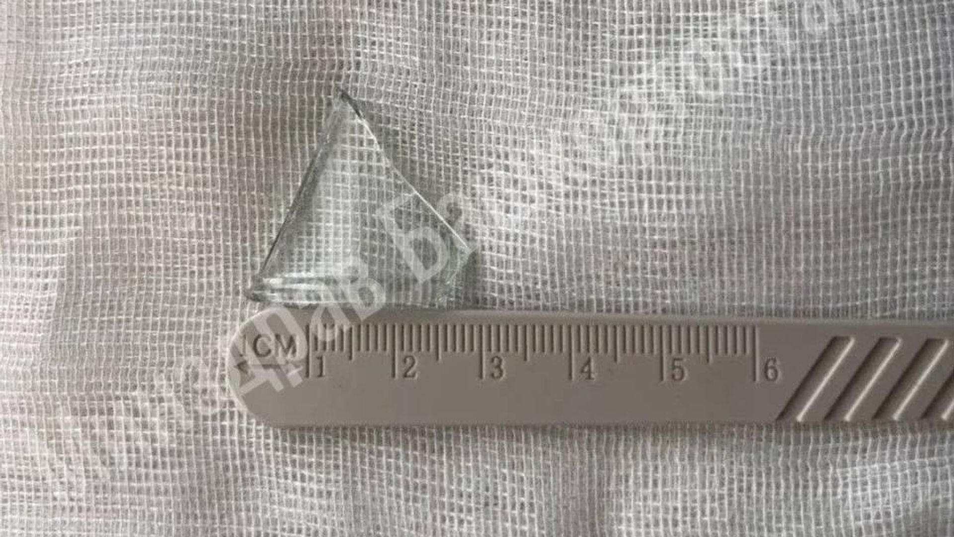 При эндоскопическом обследовании выяснилось, что осколок размером около 3 на 3 сантиметра застрял поперёк в средней части пищевода.