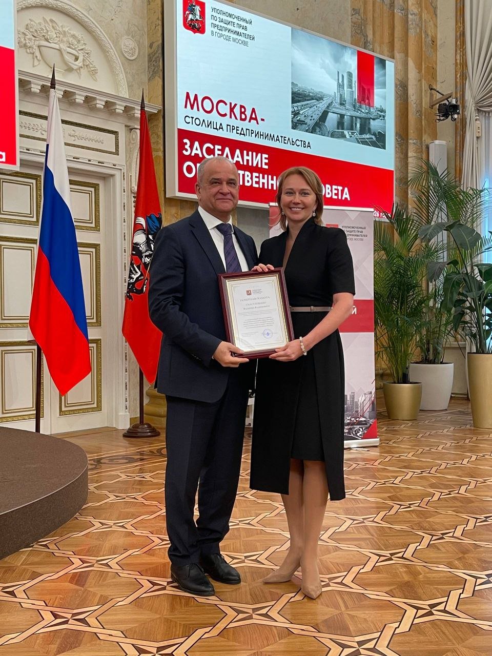 В начале заседания было представлено послание его участникам от имени мэра столицы Сергея Собянина и вручены благодарности Мэра Сергею Миронову и Муслиму Муслимову