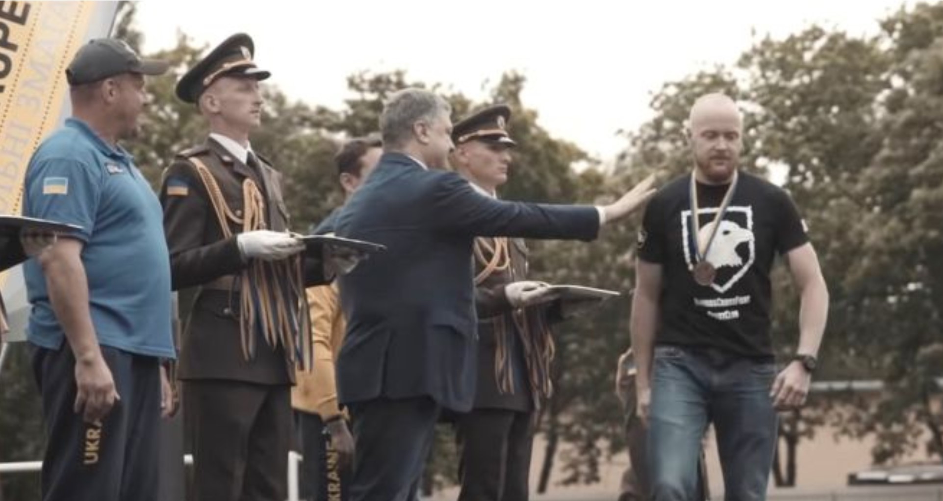 Боец украинского националистического полка «Азов» Олег Толмачев на церемонии награждения участников Invictus Games (спортивных соревнований бывших и нынешних военнослужащих, пострадавших во время военных действий), демонстративно отказался пожать руку президенту Петру Порошенко. Боец никак не отреагировал на украинского лидера даже тогда, когда он похлопал его по плечу.