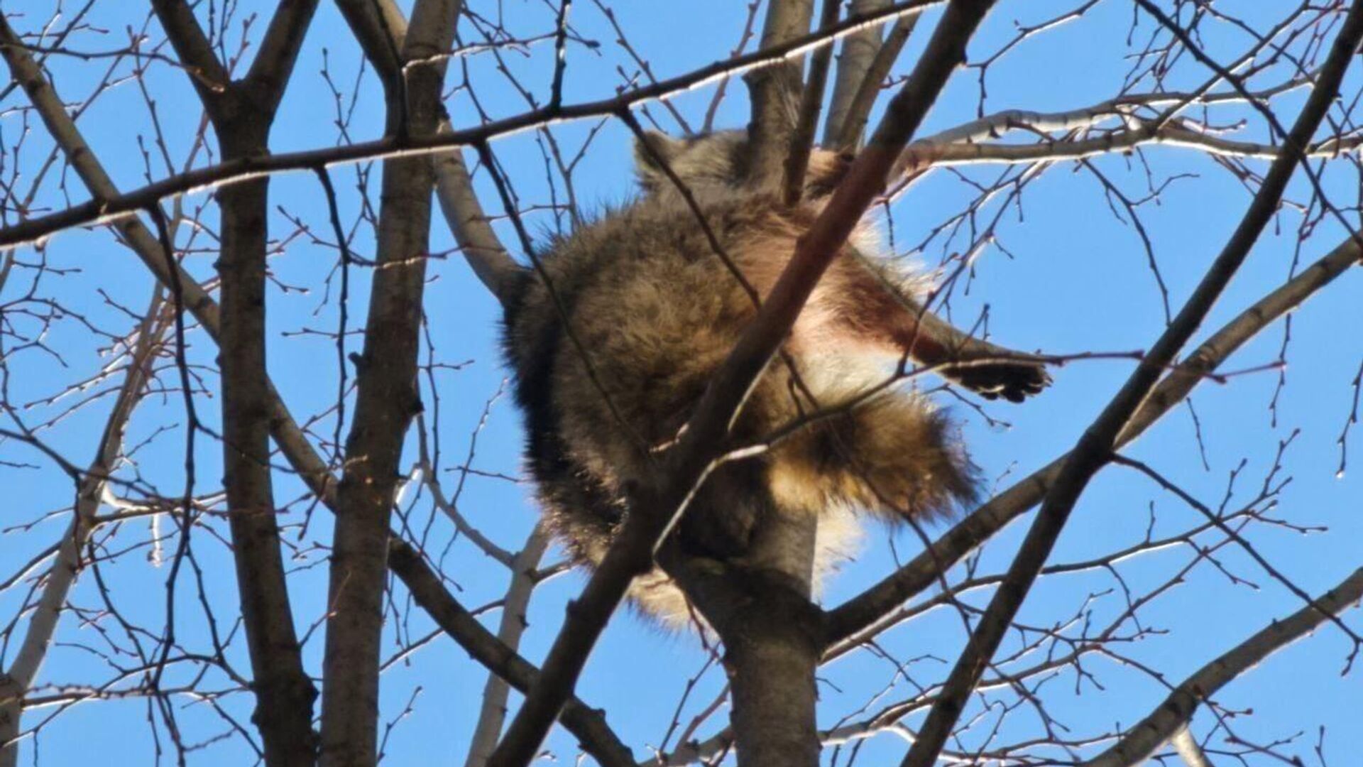 Енота, просидевшего три дня на дереве в Краснодаре, доставили в питомник