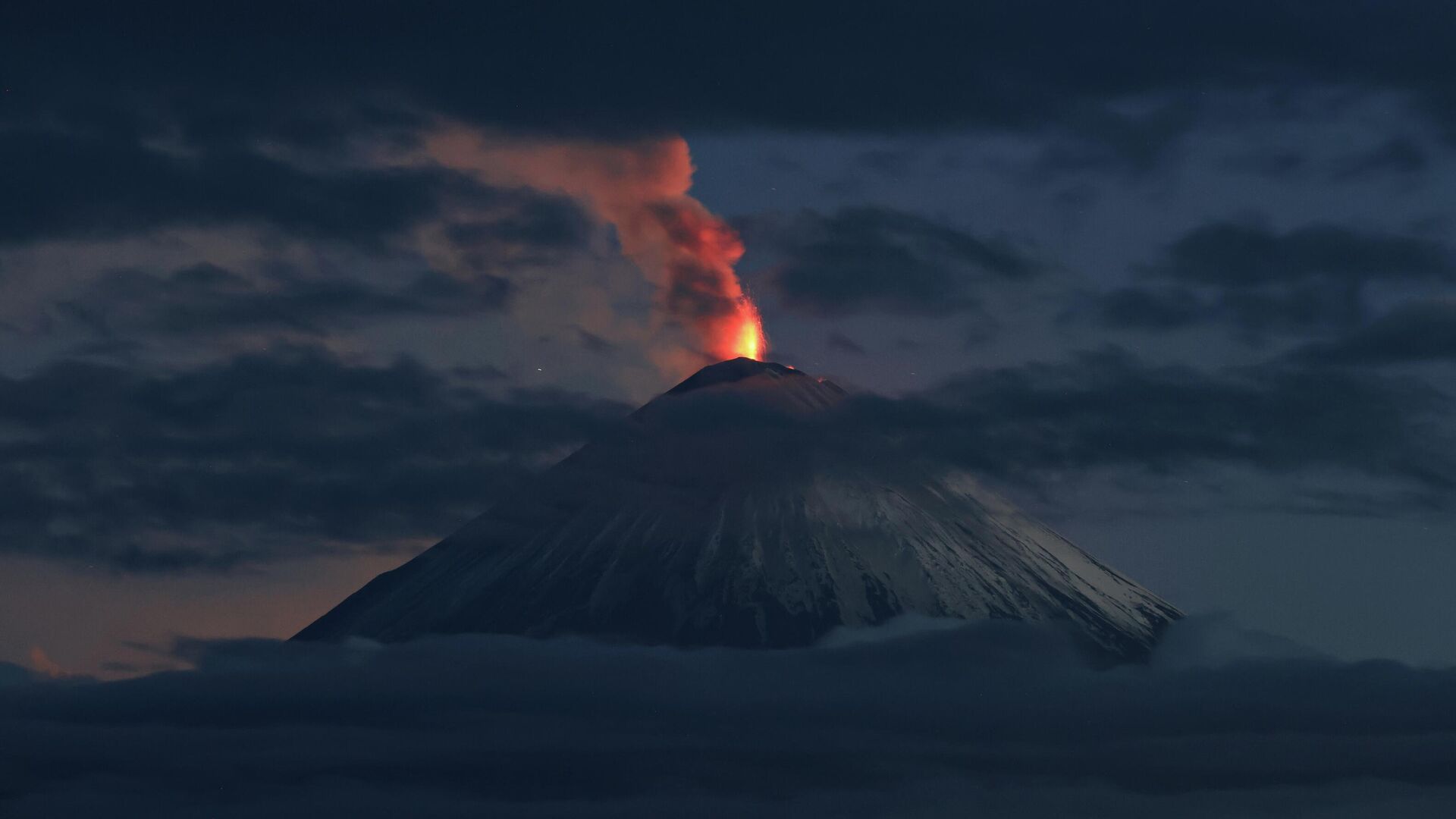 Ключевской вулкан на Камчатке произвел очередной мощный пепловый выброс