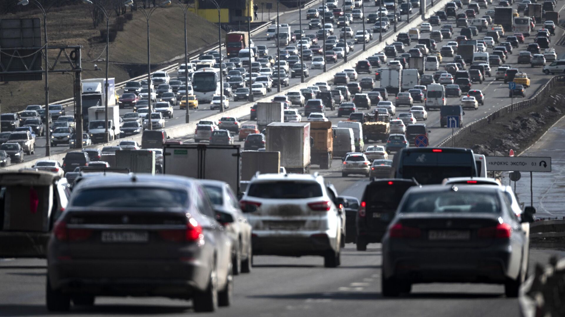 Ранее было объявлено о затруднениях на данном участке из-за грузового автомобиля, который столкнулся с колонной автомобилей, остановившихся перед съездом. По меньшей мере пять машин пострадали.
