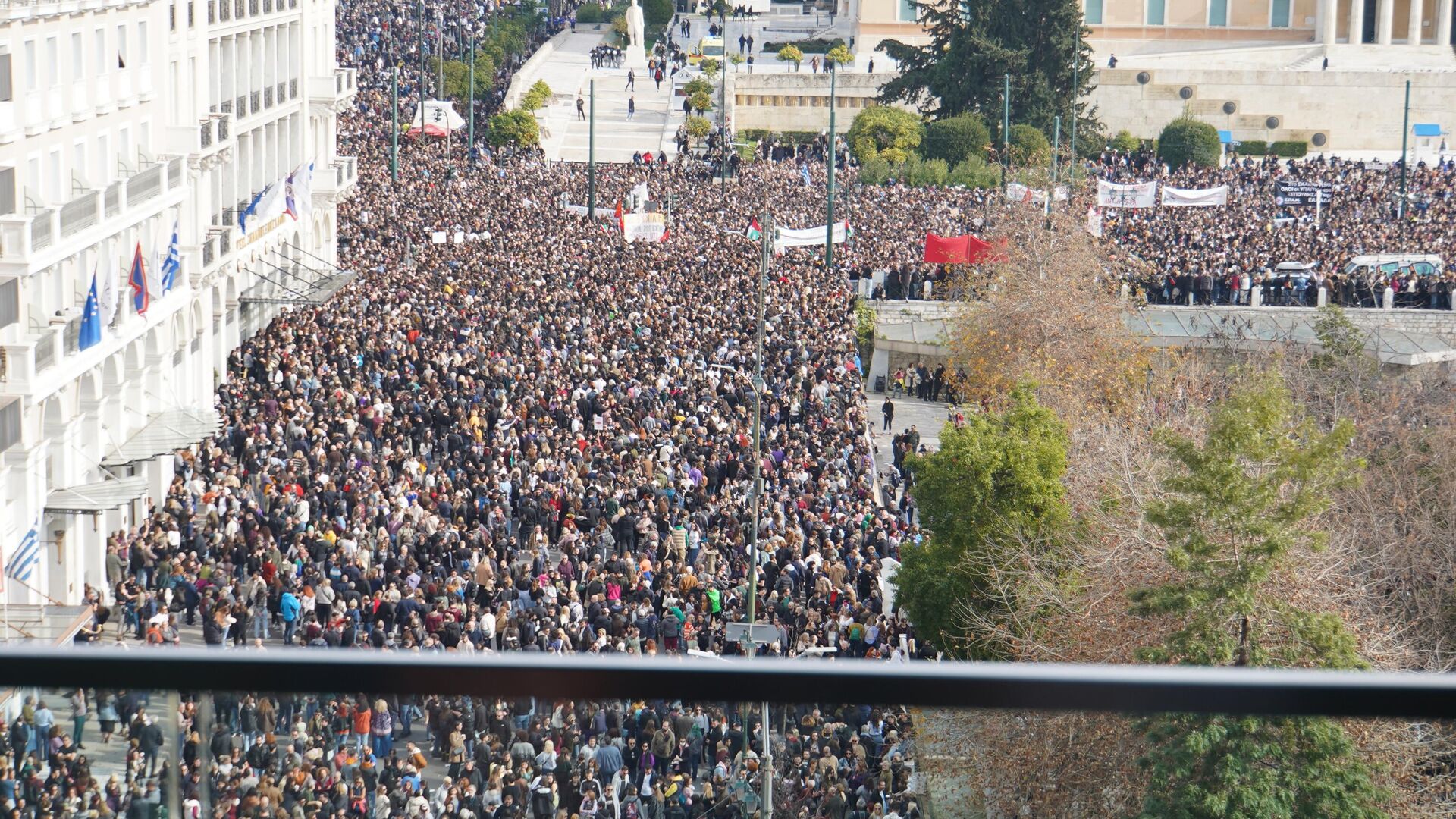 Молодые люди в масках бросали камни в полицию, на что та ответила слезоточивым газом. Митинг на площади Синтагма собрал огромное количество людей, требующих справедливости и полного расследования причин трагедии. Один из лозунгов акции был "У меня нет кислорода" - последние слова одной из погибших девушек. Официально сообщается о 30 тысячах участников митинга, хотя журналисты оценивают число присутствующих до 150 тысяч. На видео и фотографиях опубликованы сцены нападения и задержания одного человека. Железнодорожная катастрофа в Темпи, где погибли 57 человек и десятки получили ранения, стала крупнейшей в истории Греции. Железнодорожники утверждают, что системы безопасности на дороге не функционировали. Многие граждане считают, что расследование катастрофы застопорилось из-за защиты министров конституцией.