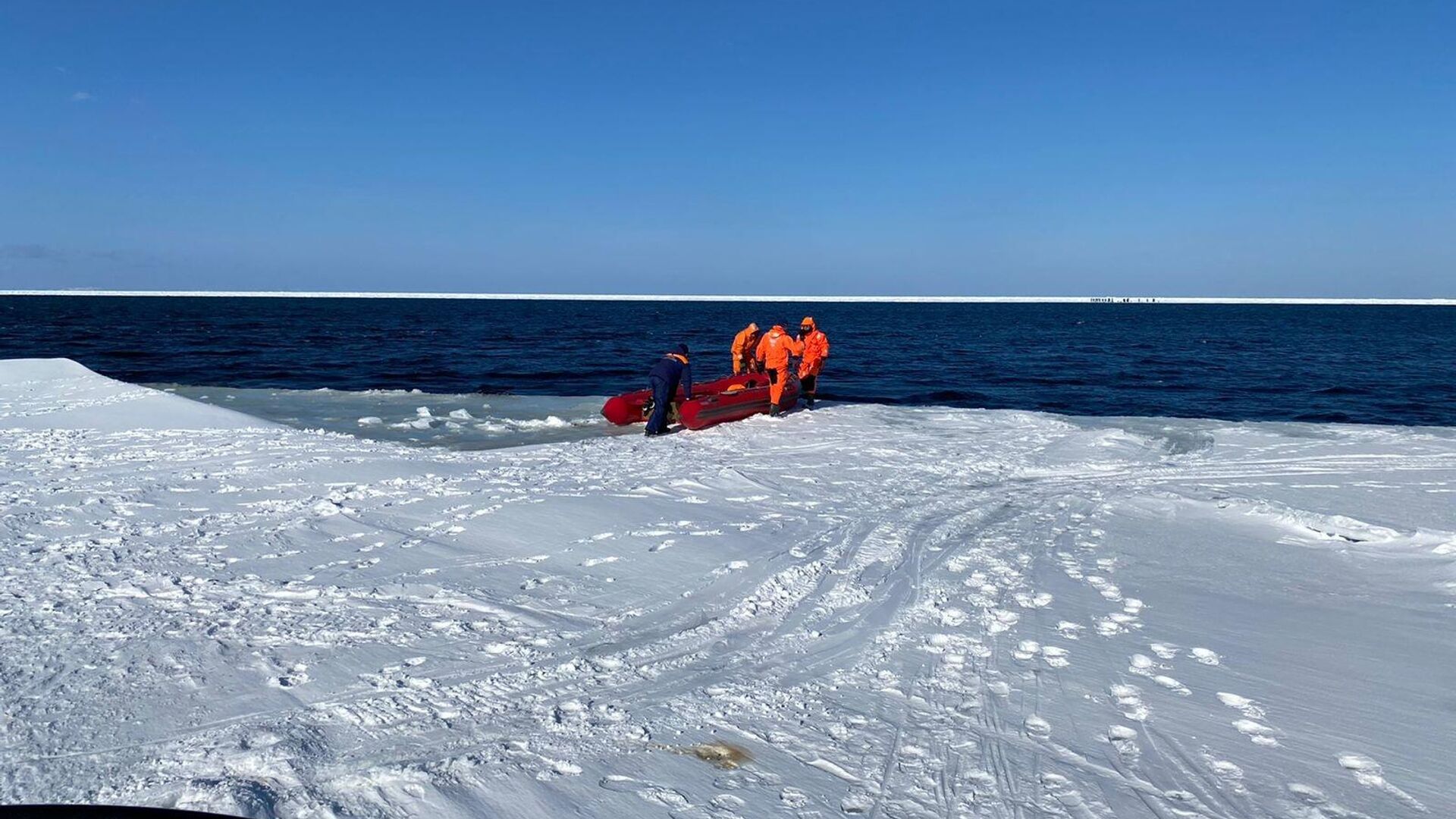 У берегов Сахалинской области продолжают спасение рыбаков на льдине