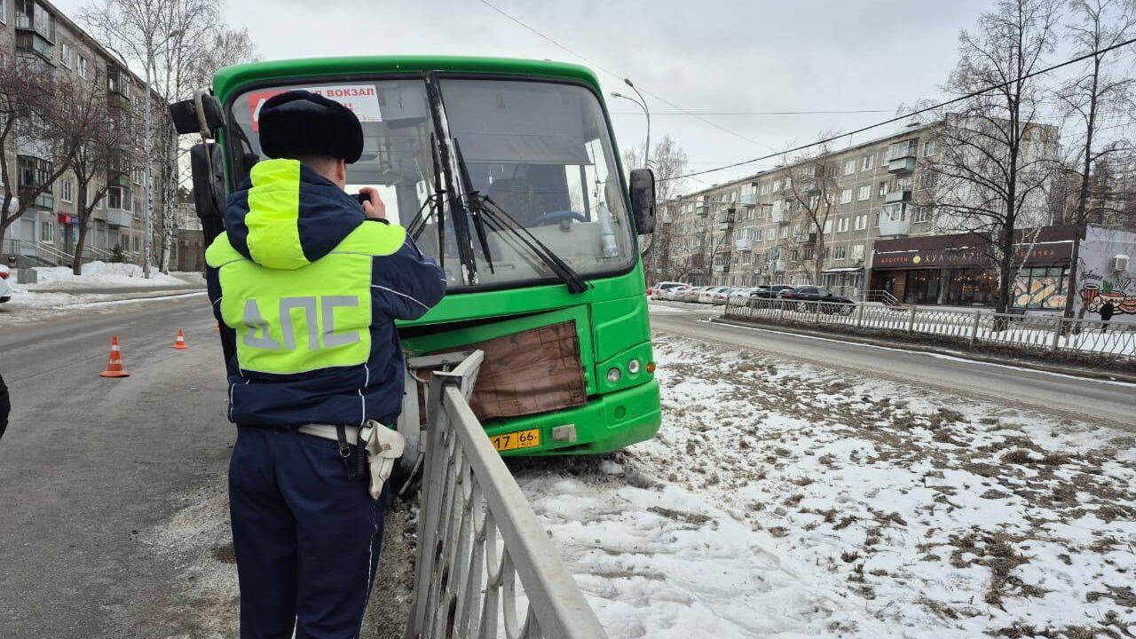 В Екатеринбурге автобус врезался в ограждение, есть пострадавшая