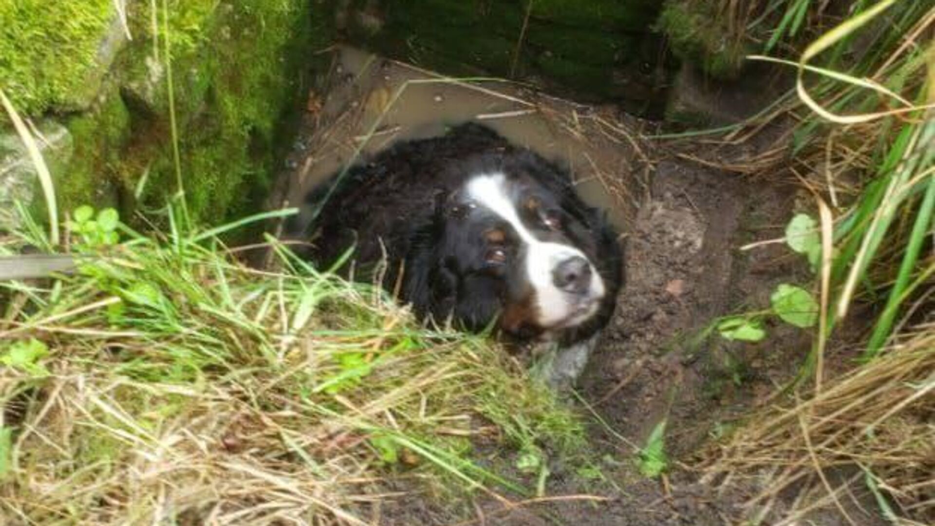 В Калининграде спасенная специалистами МЧС России бернская овчарка, которая провалилась в колодец во время прогулки с хозяйкой, не пострадала от падения.