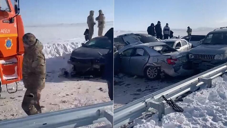В центральной части Казахстана, в Карагандинской области, произошло ДТП с участием 19 автомобилей.