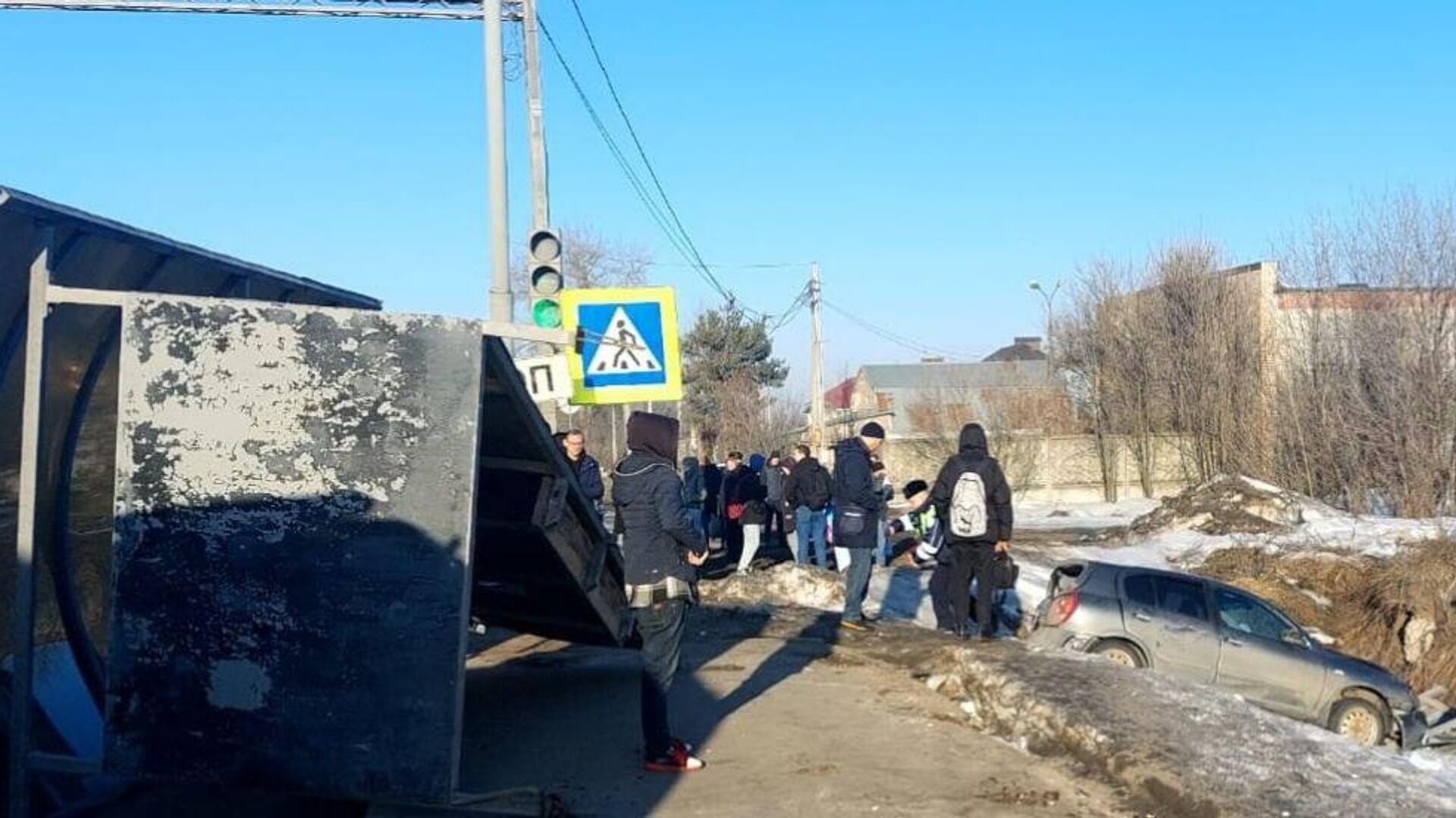 В Подмосковье автомобиль врезался в остановку, есть пострадавшие