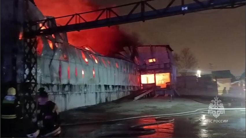 В Мытищах, подмосковном городе, пожар на складском здании ограничен на площади 1,8 тысячи квадратных метров, по информации пресс-службы МЧС России.
