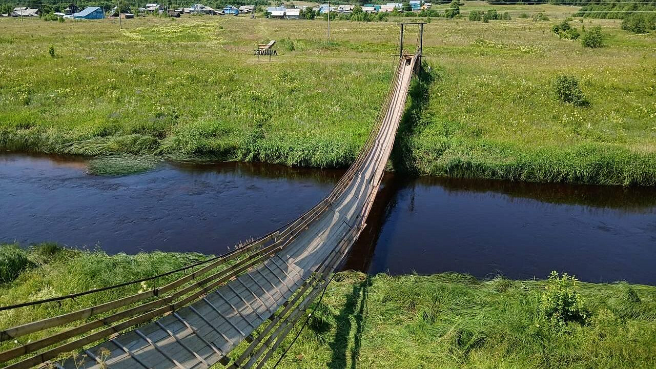 Прокуратура Вологодской области проводит проверку после обрушения пешеходного моста через реку в Никольском округе.