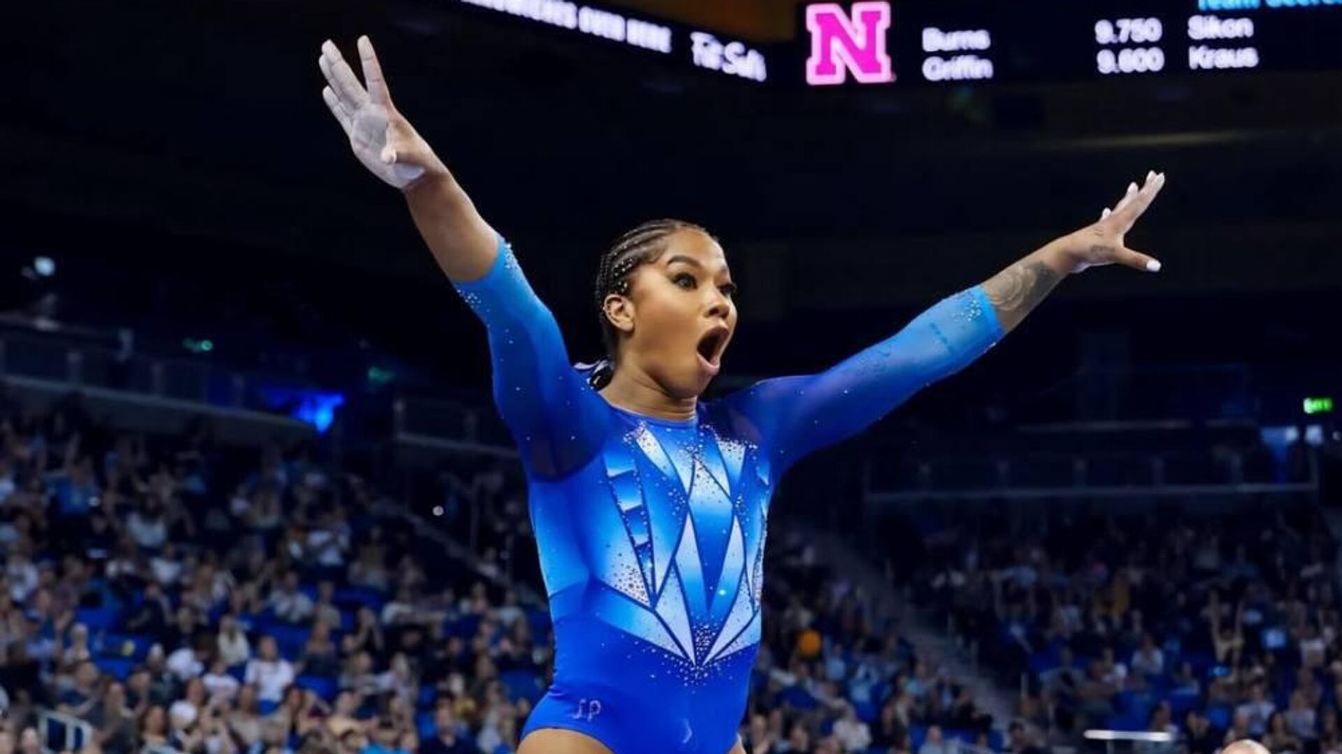 Джордан Чайлз, которой 24 года, также является обладательницей золота Олимпиады в Париже, серебряной медали Игр в Токио и золота чемпионата мира в командном многоборье.